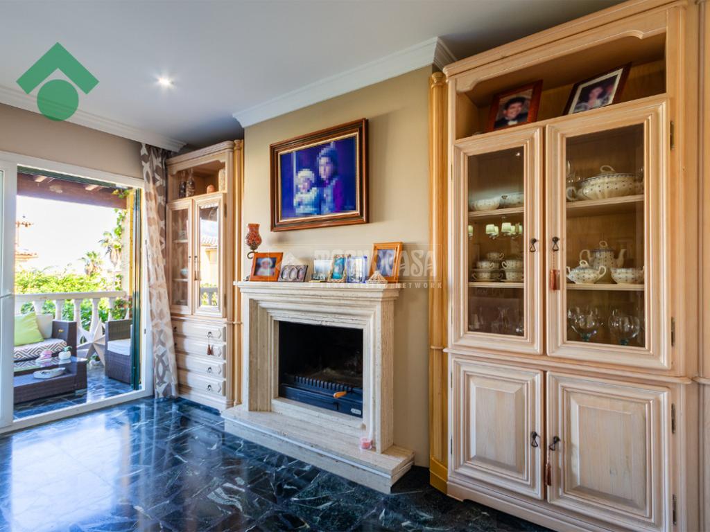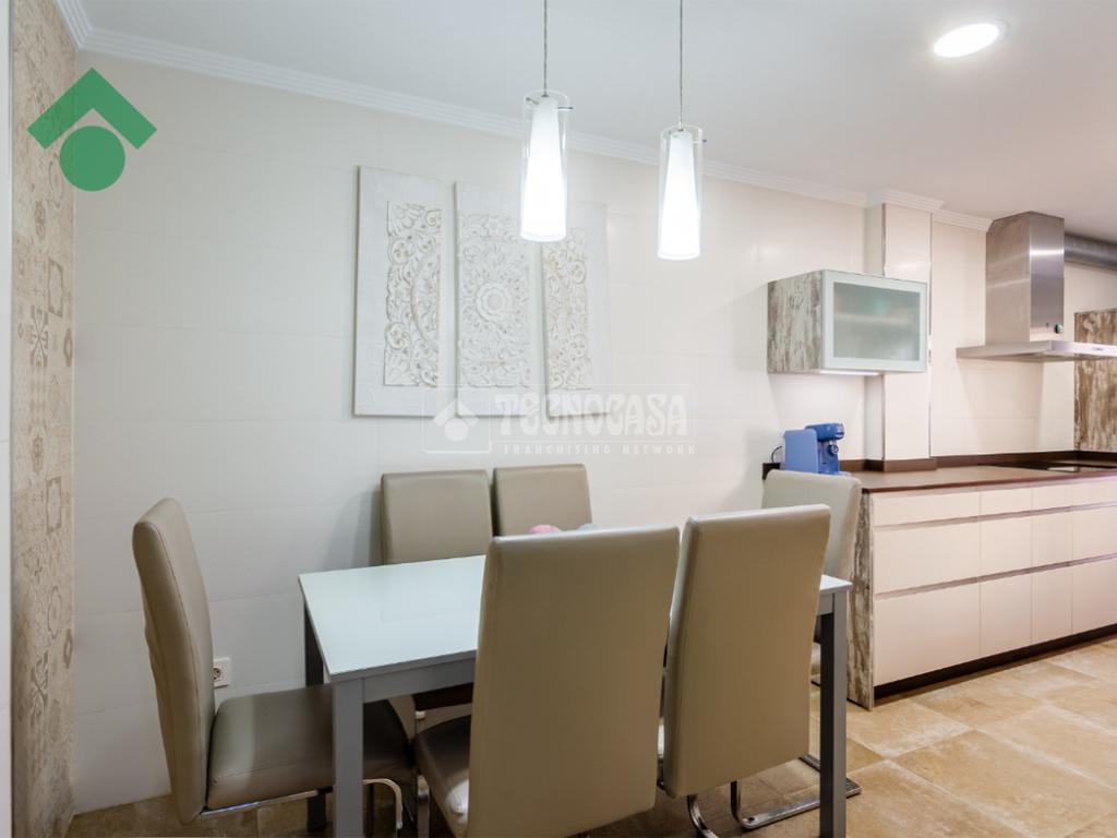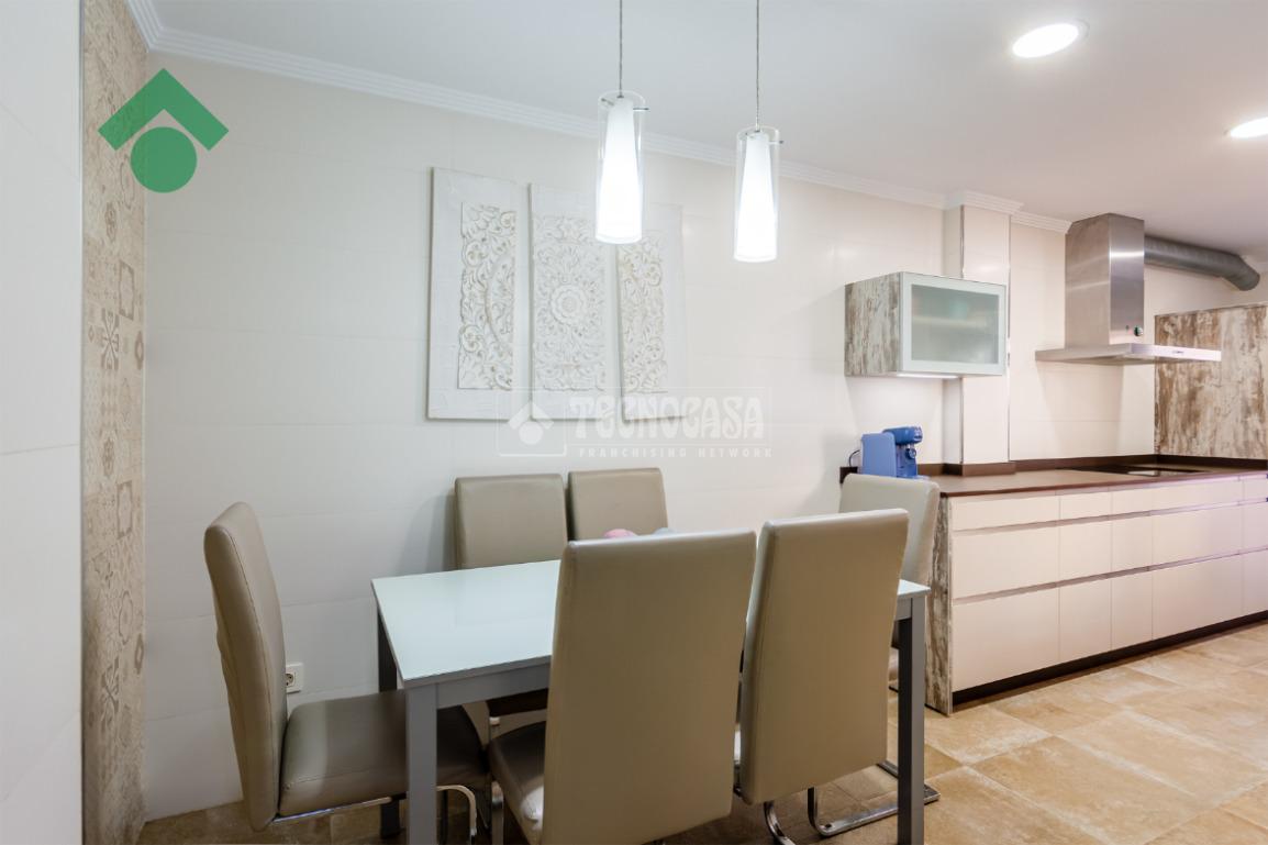 Amplio y luminoso salón comedor, una cocina independiente totalmente equipada, y un aseo. Desde esta planta se accede al jardín privado con piscina, perfecto para disfrutar del buen clima y momentos en familia.