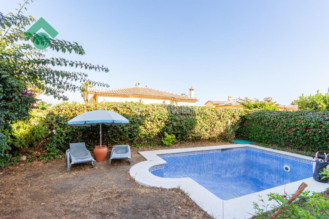 En el exterior encontrarás una zona ajardinada con piscina privada, ideal para relajarte y disfrutar al aire libre.